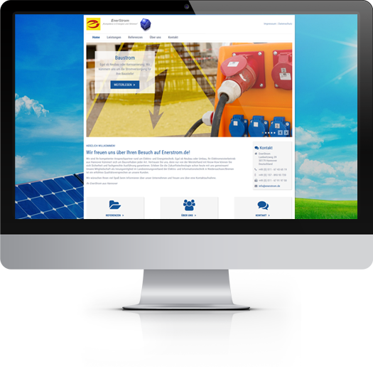 Die Firma EnerStrom aus Hannover ist ein Elektrotechnik-Meisterbetrieb und bietet in diesem Bereich vielfältige Dienstleistungen. Besondere Expertise hat die Firma durch bundesweit ausgeführte Arbeiten im Bereich der Photovoltaik. Die Webseite soll primär dem Zweck dienen, EnerStrom angemessen zu präsentieren - ein besonderes Augenmerk sollte dabei auch auf der mobilen Darstellung dienen, da gerade auf Baustellen oftmals nur mobiles Internet verfügbar ist. Um den Kunden einen Einblick in die Expertise und ausgeführte Arbeiten zu gewähren, war insbesondere die Einbindung von Bildergalerien wichtig. Durch den Einsatz von Sitemap-Modulen wird außerdem eine einfache Erweiterung der Referenzen-Sektion in der Zukunft gewährleistet.