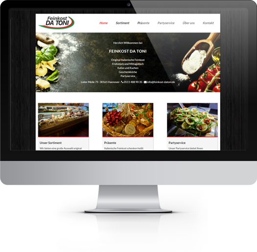 Feinkost Da Toni ist ein lokales Geschäft in der Lister Meile in Hannover, das sich auf den Verkauf italienischer Feinkost spezialisiert hat. Neben dem Tagesgeschäft bietet Feinkost Da Toni auch einen Partyservice sowie den Verkauf von Gutscheinen und Geschenkkörben an. Auf der Webseite sollen nicht nur Geschäft und Inhaber vorgestellt werden, sondern auch die verschiedenen Leistungen beworben werden. Da das Team von Feinkost Da Toni sehr engen Kontakt zu vielen ihrer Kunden pflegt, wurde ein besonderer Augenmerk darauf gelegt, der Webseite eine persönliche Note zu geben. So wurde beispielsweise auf den Einsatz von Stock-Photos weitestgehend verzichtet.