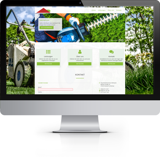 Der Hausmeisterservice Höhmann bietet seinen Kunden vielfältige Leistungen rund um Haus und Garten an. Die Webseite soll dabei über das Unternehmen und die angebotenen Leistungen informieren. Über ein Kontaktformular können Kunden die Firma kontaktieren. Mittels einer Google Maps Karte mit Markierung wird der Einzugsbereich, in dem der Hausmeisterservice Höhmann tätig ist, markiert.