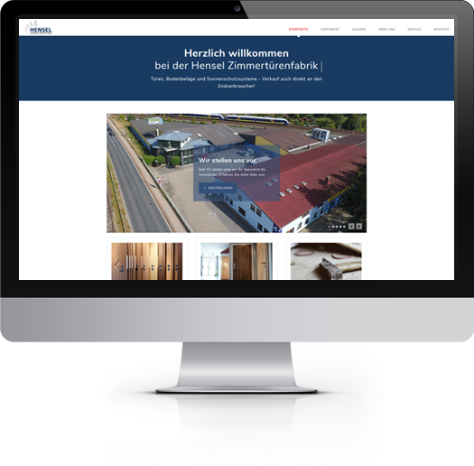 Hensel-Türen ist ein mittelständisches Unternehmen, das Innentüren, Sonnenschutz-Systeme sowie Bodenbeläge vertreibt. Die Türen werden u.a. in einer eigenen Türen-Galerie angeboten. Der Verkauf der Türen erfolgt durch ein Netzwerk an Hensel-Händlern. Die Webseite soll einerseits über das Unternehmen informieren, andererseits verschiedene Zielgruppen bedienen: Endkunden sollen sich etwa über das Sortiment informieren und Merklisten erstellen können, Händlern soll die Webseite als Informations-Plattform für den Vertrieb dienen. Die Webseite umfasst daher, neben statischen Elementen, auch verschiedenste Funktionen wie einen internen Bereich, eine Standortkarte, oder einen Produktkatalog mit Filtern und Merkliste.