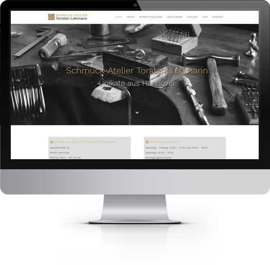 Das Schmuckatelier Torsten Lehmann in Hannover-List bietet individuell angefertigten Schmuck: Ringe, Trauringe, Anhänger, Ketten, Herrenschmuck, und vieles mehr. Die Webseite sollte dabei nicht nur das Atelier, sondern auch die Werkstücke - jeweils Einzelanfertigungen - ansprechend darstellen, um von der Qualität der Arbeiten zu überzeugen und Kunden die Möglichkeit zur Inspiration zu bieten.
