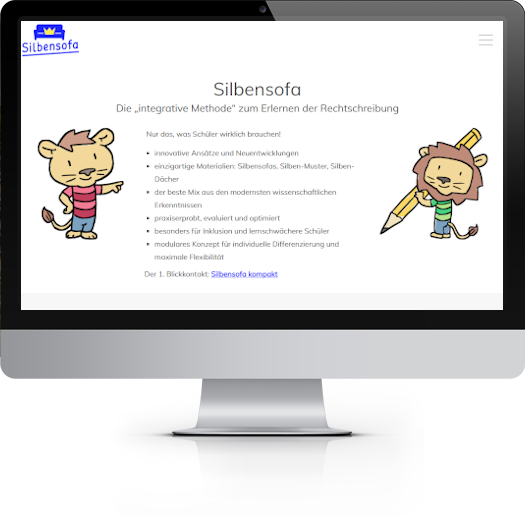 Silbensofa bietet ein Lernkonzept für Grundschüler zur Erlernung der deutschen Sprache. Das Konzept soll dabei insbesondere von Lehrern verwendet werden, um den Unterricht zu gestalten. Da die Vermarktung über eine externe Plattform erfolgen soll, dient die Webseite als Informationsportal mit umfangreichen Erklärungen zu dem Konzept und der dahinterstehenden Didaktik.